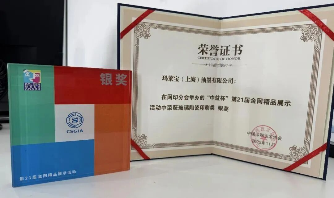 32.2025年11月,瑪萊寶榮獲第21屆金網(wǎng)精品展示玻璃陶瓷印刷類銀獎(jiǎng)。
