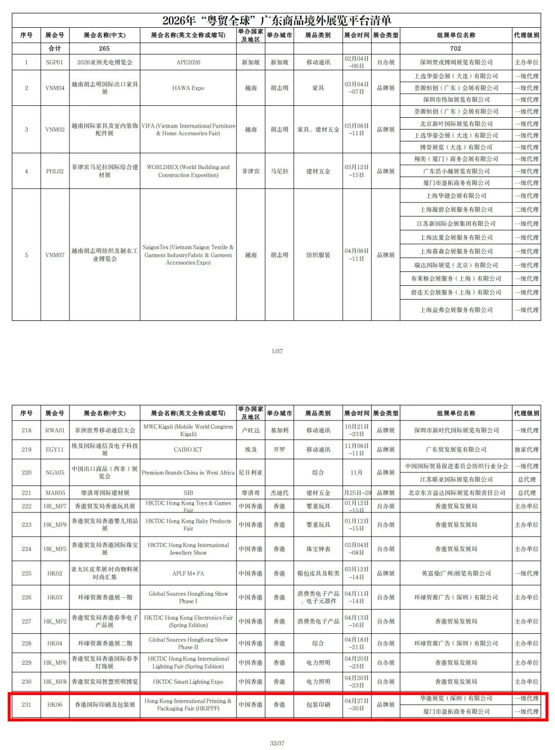一年之計在于春。廣東省2026年"粵貿(mào)全球"清單的發(fā)布,猶如開年的一聲號角,為外貿(mào)企業(yè)指明方向。其中獲官方認證的香港國際印刷及包裝展,不僅是一個行業(yè)窗口,更是廣大印刷包裝企業(yè)借助香港"自由港+獨立關稅區(qū)"的獨特制度優(yōu)勢,以最高效、最可靠的方式鏈接全球市場的黃金跳板。其他各省市的印刷包裝企業(yè)亦可關注各地政策動向,及時把握參展機會。