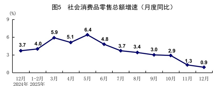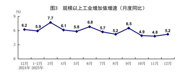 工業(yè)增加值:2025年全年,規(guī)模以上工業(yè)增加值同比增長(zhǎng)5.9%,12月,同比實(shí)際增長(zhǎng)5.2%。