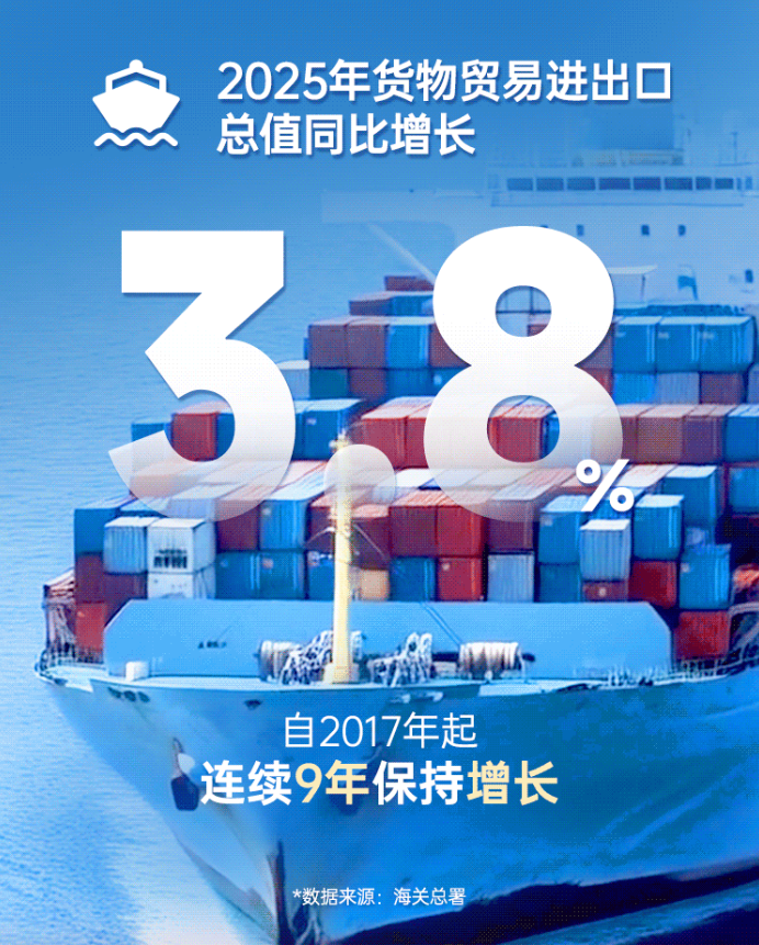 全年貨物進(jìn)出口總額454687億元,比上年增長(zhǎng)3.8%。其中,出口269892億元,增長(zhǎng)6.1%;進(jìn)口184795億元,增長(zhǎng)0.5%。民營(yíng)企業(yè)進(jìn)出口增長(zhǎng)7.1%,占進(jìn)出口總額的比重為57.3%,比上年提高1.8個(gè)百分點(diǎn)。對(duì)共建“一帶一路”國(guó)家進(jìn)出口增長(zhǎng)6.3%,占進(jìn)出口總額的比重為51.9%。高技術(shù)產(chǎn)品出口增長(zhǎng)13.2%。12月份,貨物進(jìn)出口總額42630億元,同比增長(zhǎng)4.9%。其中,出口25359億元,增長(zhǎng)5.2%;進(jìn)口17271億元,增長(zhǎng)4.4%。