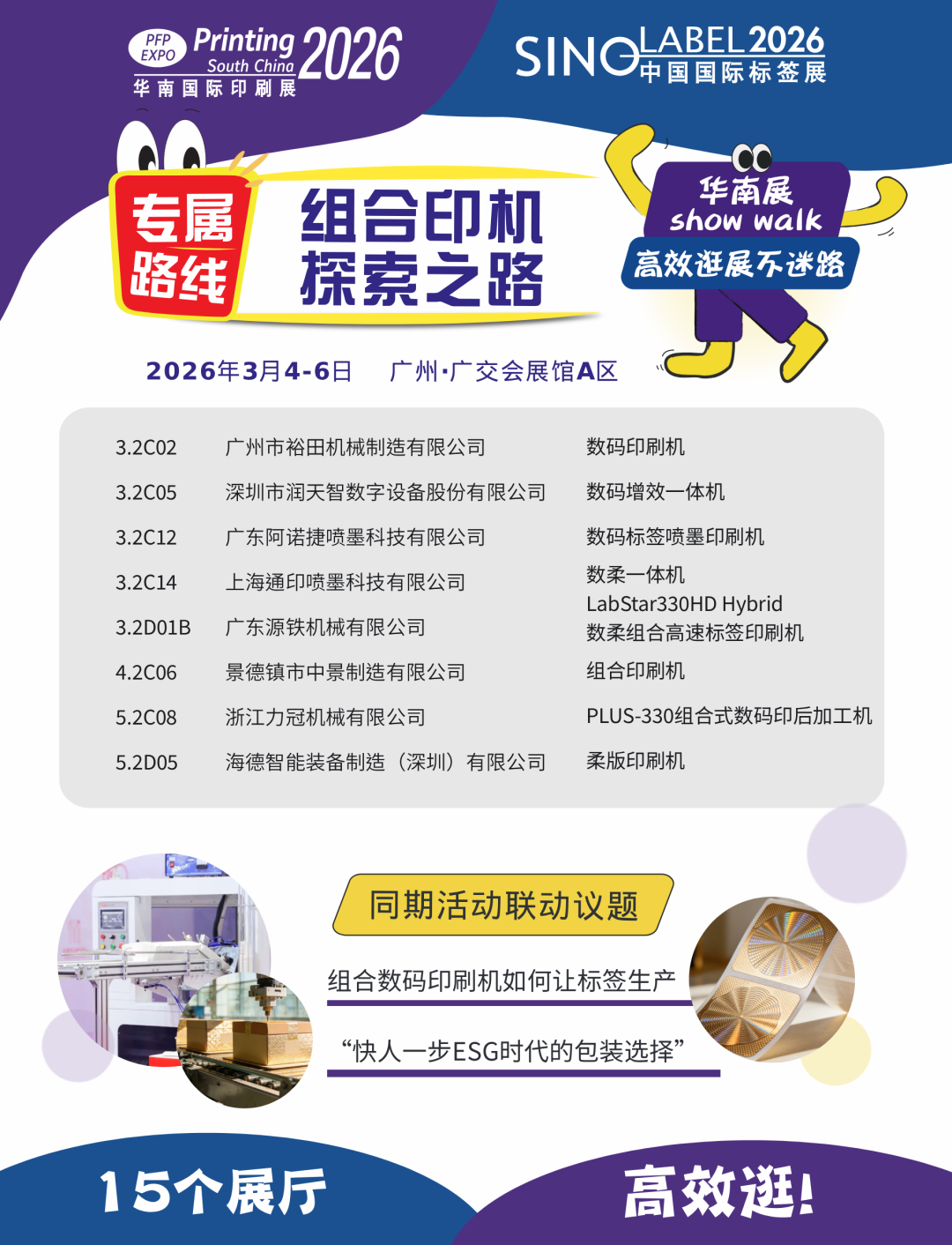 2026年,展會創(chuàng)新推出“華南展Show Walk”主題參觀路線,為您系統(tǒng)化梳理標簽生產關鍵環(huán)節(jié)與未來趨勢,打造高效、沉浸式的探索體驗之旅。
