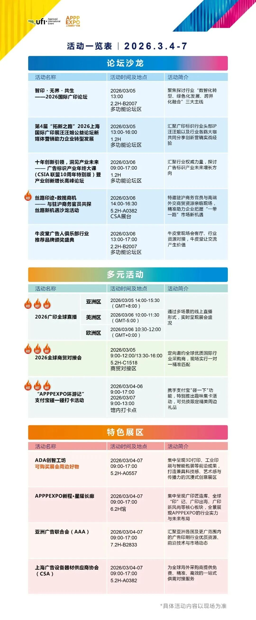 作為廣印行業(yè)的前瞻性交流平臺,APPPEXPO 2026延續(xù)了“展+會”雙輪驅(qū)動模式,深挖行業(yè)資源,升級展會內(nèi)容配套,同期舉辦多場主題論壇、技術(shù)講座,廣邀行業(yè)領(lǐng)袖、專業(yè)人士及眾多大咖,聚焦“AI+”數(shù)智升級、市場趨勢洞察、可持續(xù)發(fā)展路徑、數(shù)字化轉(zhuǎn)型實踐、創(chuàng)新營銷模式及出海布局等關(guān)鍵議題展開深入探討,分享前瞻行業(yè)趨勢,激發(fā)創(chuàng)新思維。展會四天,將持續(xù)輸出有價值的行業(yè)思考,為行業(yè)注入深刻洞察與行業(yè)智慧。