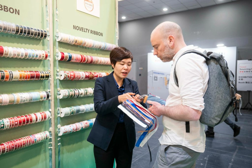 我們公司主要生產(chǎn)紙制品,包括紙紗、紙制織帶、紙繩子等。自2018年起,我們持續(xù)每年參加香港國(guó)際印刷及包裝展。這個(gè)展覽是我們最早的推廣的平臺(tái),主要針對(duì)海外的歐洲、美國(guó)、日韓等地。我們已成功對(duì)接目標(biāo)客戶群體,本次參展目標(biāo)訂單額約30萬(wàn)至40萬(wàn)美元,同時(shí)會(huì)交換300至500張名片。