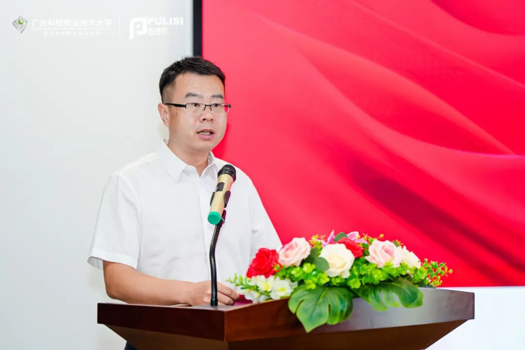 隨后,在熱烈的掌聲中,廣州市普理司科技有限公司董事長林小博與廣州科技職業(yè)技術(shù)大學副校長周小鐵代表雙方進行了設(shè)備捐贈簽約與揭幕儀式,同時廣州市普理司科技有限公司董事長林小博、總經(jīng)理劉璐被榮聘為廣州科技職業(yè)技術(shù)大學“產(chǎn)業(yè)導師”,進一步夯實了校企資源互補、人才共育的合作基礎(chǔ),為后續(xù)學生實踐教學與技能培養(yǎng)搭建起堅實平臺。
