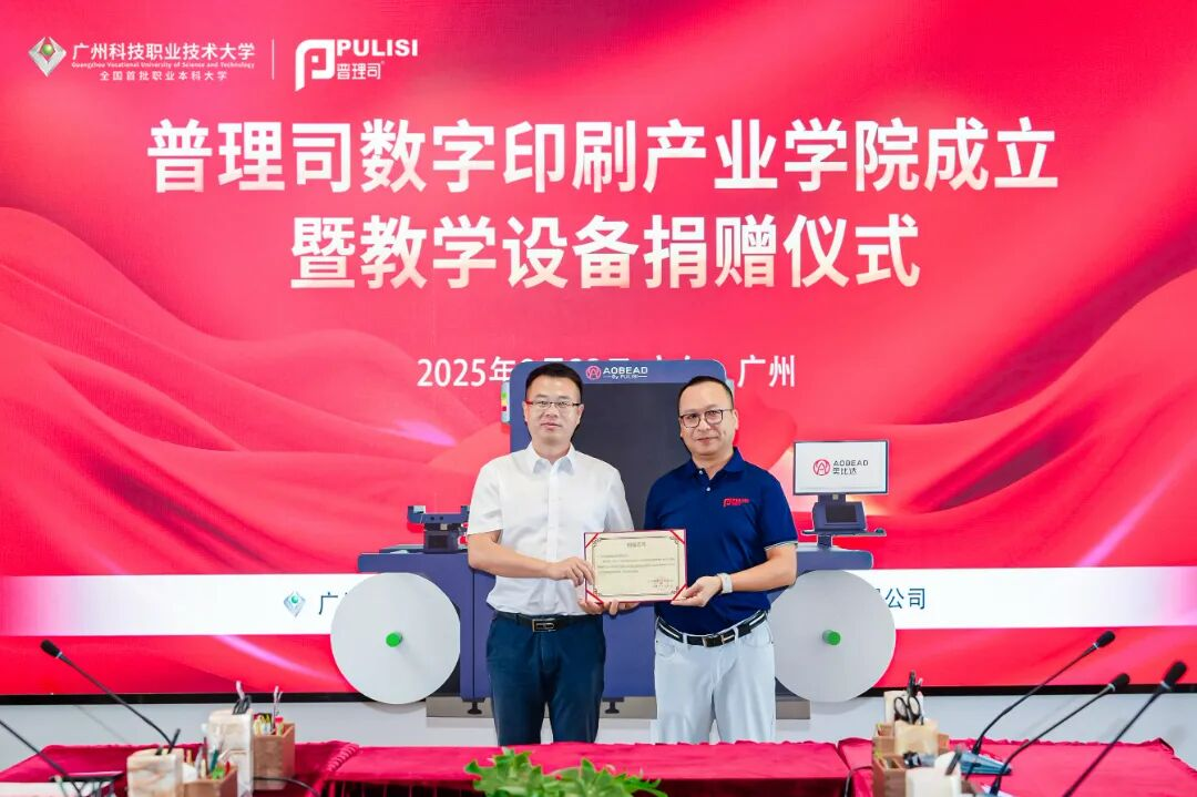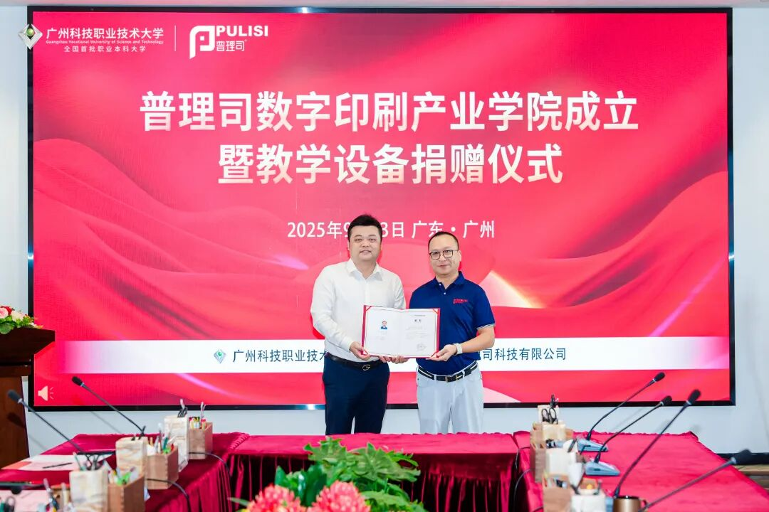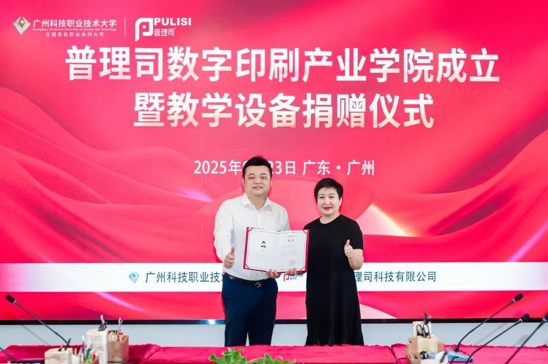 至此,普理司數(shù)字印刷產(chǎn)業(yè)學院成立暨教學設(shè)備捐贈儀式&數(shù)字印刷技術(shù)產(chǎn)學研協(xié)同創(chuàng)新論壇圓滿舉辦。這標志著廣州市普理司科技有限公司與廣州科技職業(yè)大學的戰(zhàn)略合作邁上新臺階,是雙方可持續(xù)深化“教育鏈、人才鏈、產(chǎn)業(yè)鏈、創(chuàng)新鏈”融合的重要里程碑。未來,雙方將充分整合優(yōu)質(zhì)資源,打造“人才培養(yǎng)、技術(shù)創(chuàng)新、社會服務”三位一體的產(chǎn)教融合平臺,為數(shù)字印刷產(chǎn)業(yè)突破人才供給瓶頸注入強勁動力。
