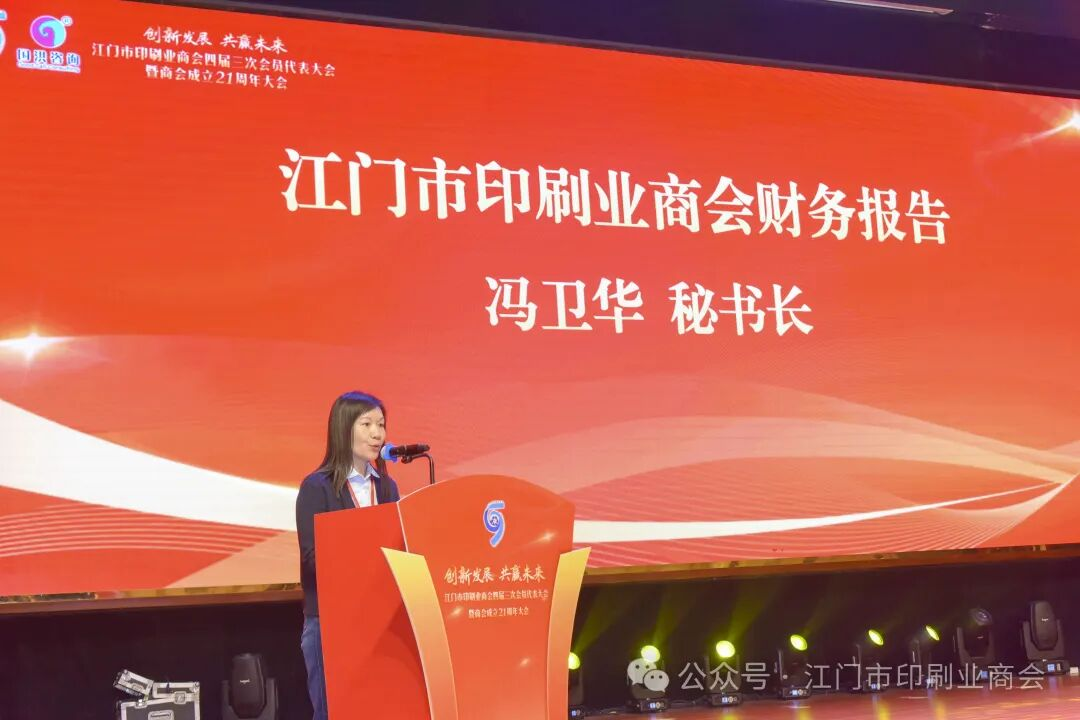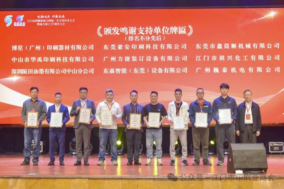 在隨后的會(huì)員代表大會(huì)中,會(huì)長(zhǎng)馮廣源作年度工作報(bào)告,全面總結(jié)過去一年的工作成果與行業(yè)發(fā)展態(tài)勢(shì),并對(duì)未來推動(dòng)產(chǎn)業(yè)向高質(zhì)量發(fā)展作出規(guī)劃。秘書長(zhǎng)馮衛(wèi)華匯報(bào)了年度財(cái)務(wù)情況,展現(xiàn)了商會(huì)規(guī)范透明的運(yùn)作機(jī)制。廣東省印刷復(fù)制業(yè)協(xié)會(huì)常務(wù)副會(huì)長(zhǎng)兼秘書長(zhǎng)李炯致辭,充分肯定江門印刷業(yè)近年來取得的成績(jī),并鼓勵(lì)行業(yè)持續(xù)創(chuàng)新、深化協(xié)同。大會(huì)還舉行了新增理事單位授牌儀式,并向多家支持單位頒發(fā)感謝牌匾。