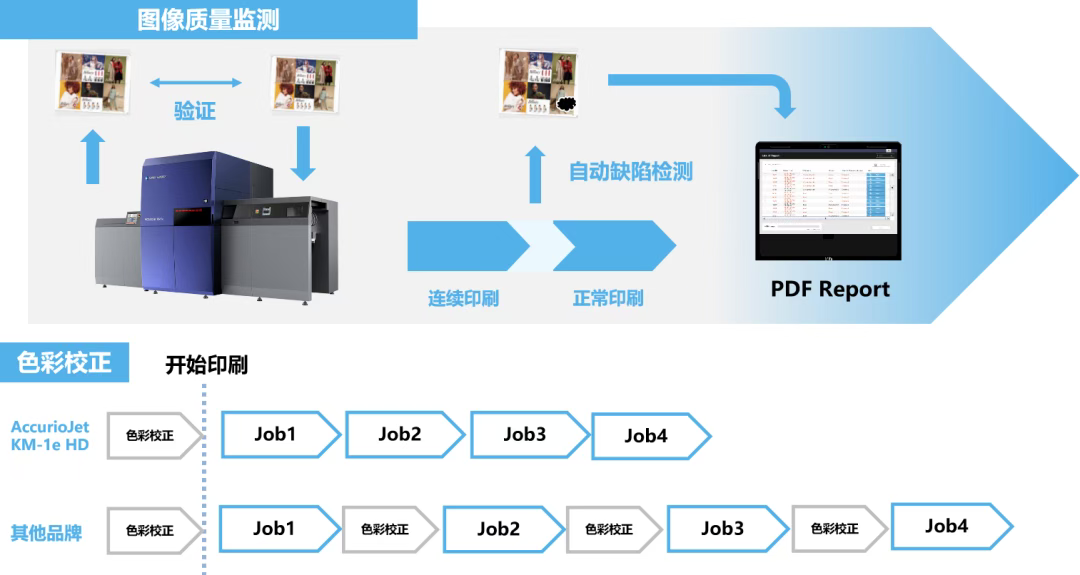 AccurioJet KM-1e HD無需進(jìn)行頻繁色彩校正,并支持自動(dòng)監(jiān)測印刷缺陷,不僅可節(jié)省色彩校正所浪費(fèi)的時(shí)間,還可避免人工檢測帶來的誤差和材料浪費(fèi),由此能大幅降低作技能門檻,作人員即使沒有專業(yè)背景也能輕松上手,可大幅減少培訓(xùn)時(shí)間與成本。